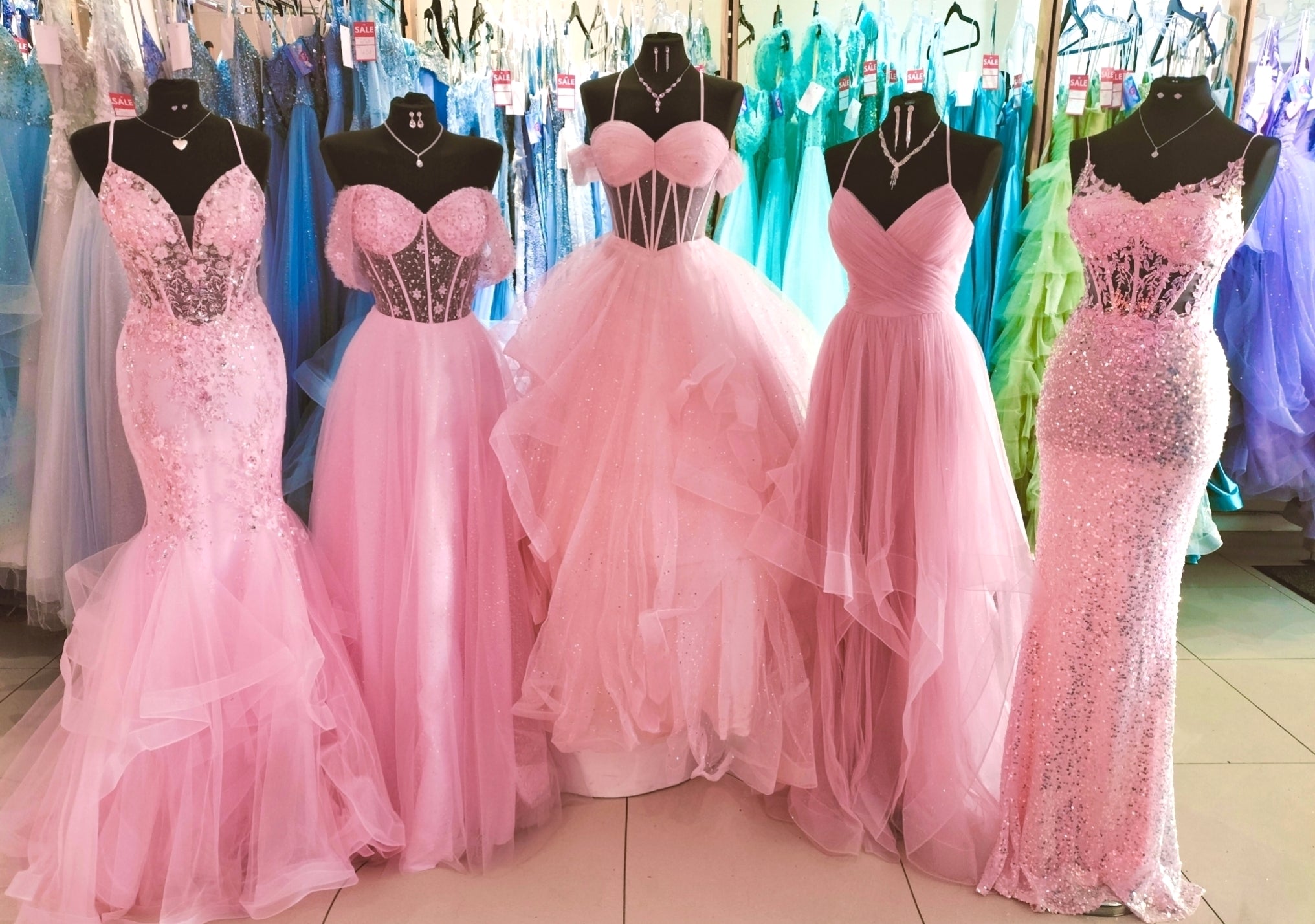 A shop FULL of designer dresses from all over the world. This list changes daily but we typically stock JOVANI, Rachel Allan, Angel Forever, Tiffanys, Selene Couture, Sherri Hill and much much more